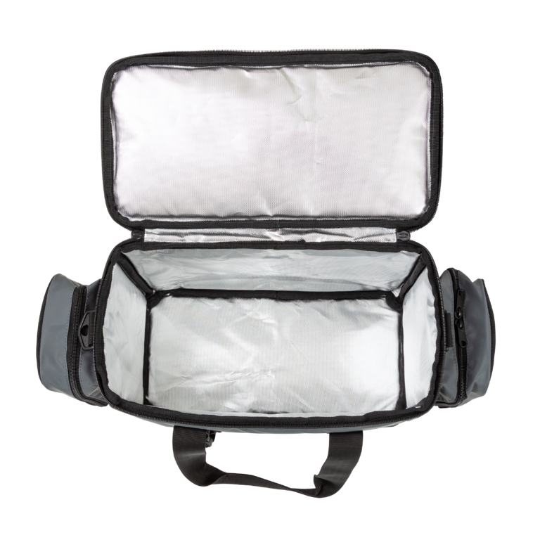 Hergestellt aus vollständig wasserdichten Material und einem strapazierfähigen Boden ist diese Tasche zum Angeln vom Ufer oder vom Boot aus geeignet. Nicht nur, dass diese Tasche selbst vollständig isoliert ist, so dass sie die Köder für einen Tag kühl hält, sondern die beiden Innentaschen können vollständig abgenommen und in die Tiefkühltruhe gelegt werden. Die Seitentaschen sind komplett mit elastischem Gurtband ausgestattet, um Öle, Additive und Spritzen sicher aufzubewahren. Externes Gurtband mit Clips bietet Platz für Ergänzungen in letzter Minute, wenn der interne Platz am Limit ist.
