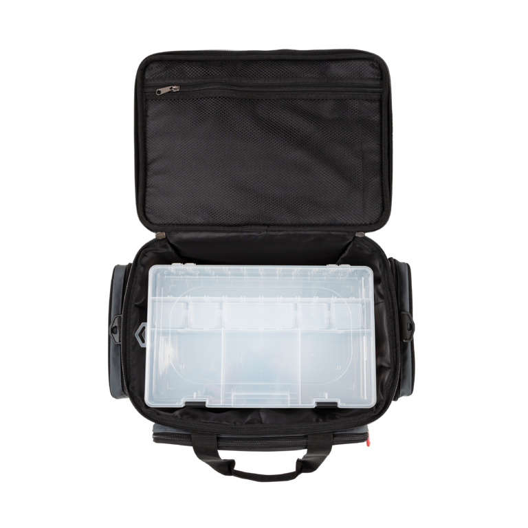 Hergestellt mit vollständig wasserdichtem Material und einem strapazierfähigen Boden ist diese Tasche zum Angeln vom Ufer oder vom Boot geeignet. Ausgestattet mit Tackle-Boxen und 3 Außentaschen haben Sie genug Stauraum für einen ganzen Angeltag. Werkzeughalter in der Fronttasche ermöglichen es Ihnen, wichtige Gegenstände an Ort und Stelle zu halten, wenn sie benötigt werden, und Netztaschen im Deckel und auf der Vorderseite ermöglichen die Aufbewahrung allen anderem Zubehör, dass Sie benötigen könnten.