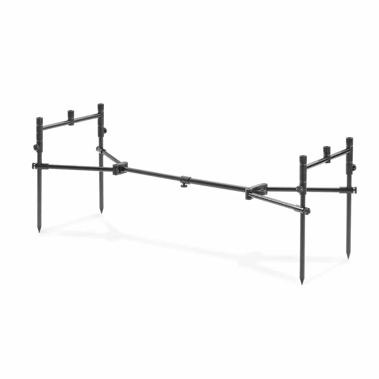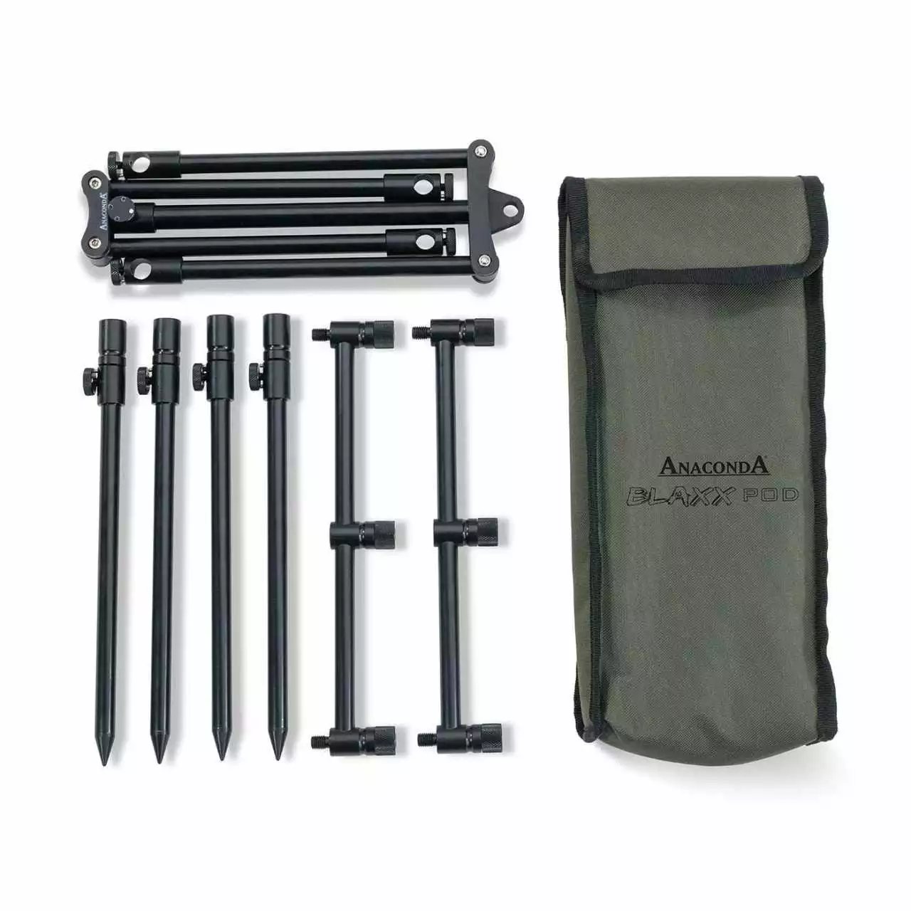 Ausgestattet ist das Mini Rod Pod mit zwei Stück 3er Buzzer Bars die jeweils eine Länge von 27cm ausweisen. Die Höhe der vier Banksticks kann verstellt werden so dass eine Gesamthöhe von 33 bis 50cm eingestellt werden kann. Auch das mittlere X-Frame ist in seiner länge verstellbar.