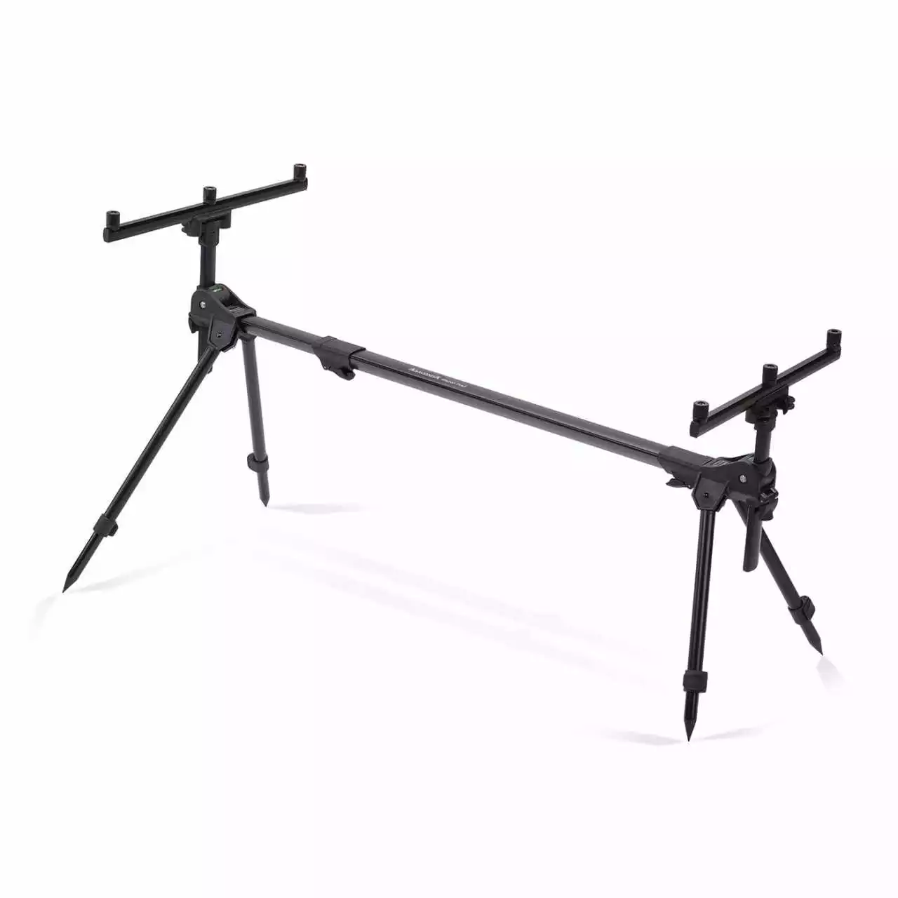 Damit dieses Rod Pod auch absolut sicher steht sind zudem jeweils vorne und hinten ein Sicherungshaken sowie eine Wasserwaage eingebaut. Dabei wurden besondere Anforderungen im Gelände mit berücksichtigt.