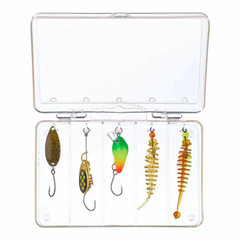 Unsere fängigsten Forellenköder in der prakti-schen Zubehörbox mit Eurohänger.