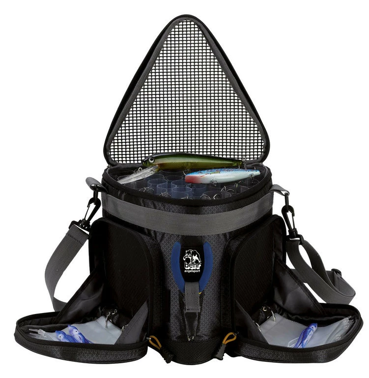Eine weiterentwickelte Dreieckform unseres beliebten Standard-Pilker Caddys. Der neue Caddy enthält 21 durchsichtige Kunststoffröhrchen (Ø 4 cm) in die Pilker, Wobbler oder Blinker von oben eingehängt werden können. Die beiden aufgesetzten Außentaschen beinhalten jeweils 5 transparente Vorfachtaschen für Systeme, Haken oder andere Teile. Die Farbe Tasche ist grün (Produktfoto farblich abweichend – dient der Veranschaulich)