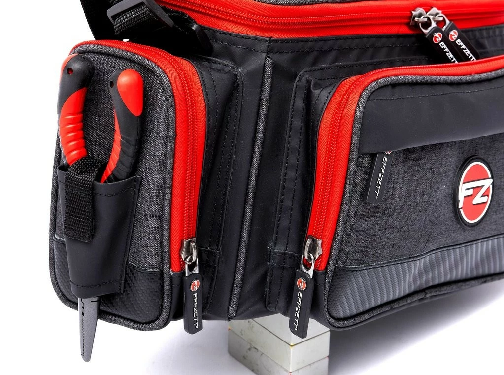 Die EFFZETT Pro-Tact Streetfishing-Tasche wird mit 2 M-Köderboxen geliefert und ist mit einer großen Tasche vorne und einer mittelgroßen Seitentasche ausgestattet, in die viele Zubehörteile passen. Es gibt auch einen Flaschenhalter, der problemlos Flaschen bis zu 0,7 l aufnimmt. Auf der Außenseite der Vordertasche befindet sich eine weitere versteckte Tasche, die sich ideal für Papiere, Telefon oder Schlüssel eignet. Der bequeme und dick gepolsterte Schultergurt ist frei verstellbar, damit er perfekt sitzt. Wie die meisten Modelle der EFFZETT Pro-Tact Luggage-Serie enthält die Streetfishing Bag eine Zange aus Carbonstahl mit Sprengring-, Schneide- und Crimp-Funktion.