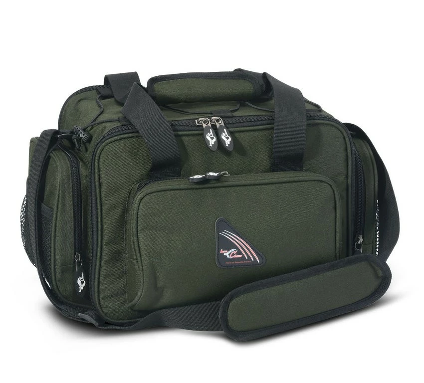 Die Angeltasche wird mit 5 Köder- und Zubehörboxen geliefert. Somit lassen sich eine Menge an Angelzubhör wie Kunstköder, Wirbel, Haken oder Jigs verstauen. Sehr praktisch sind auch ihre zusätzlichen Außen- und Netztaschen. Auch diese Tasche ist rundum gepolstert.