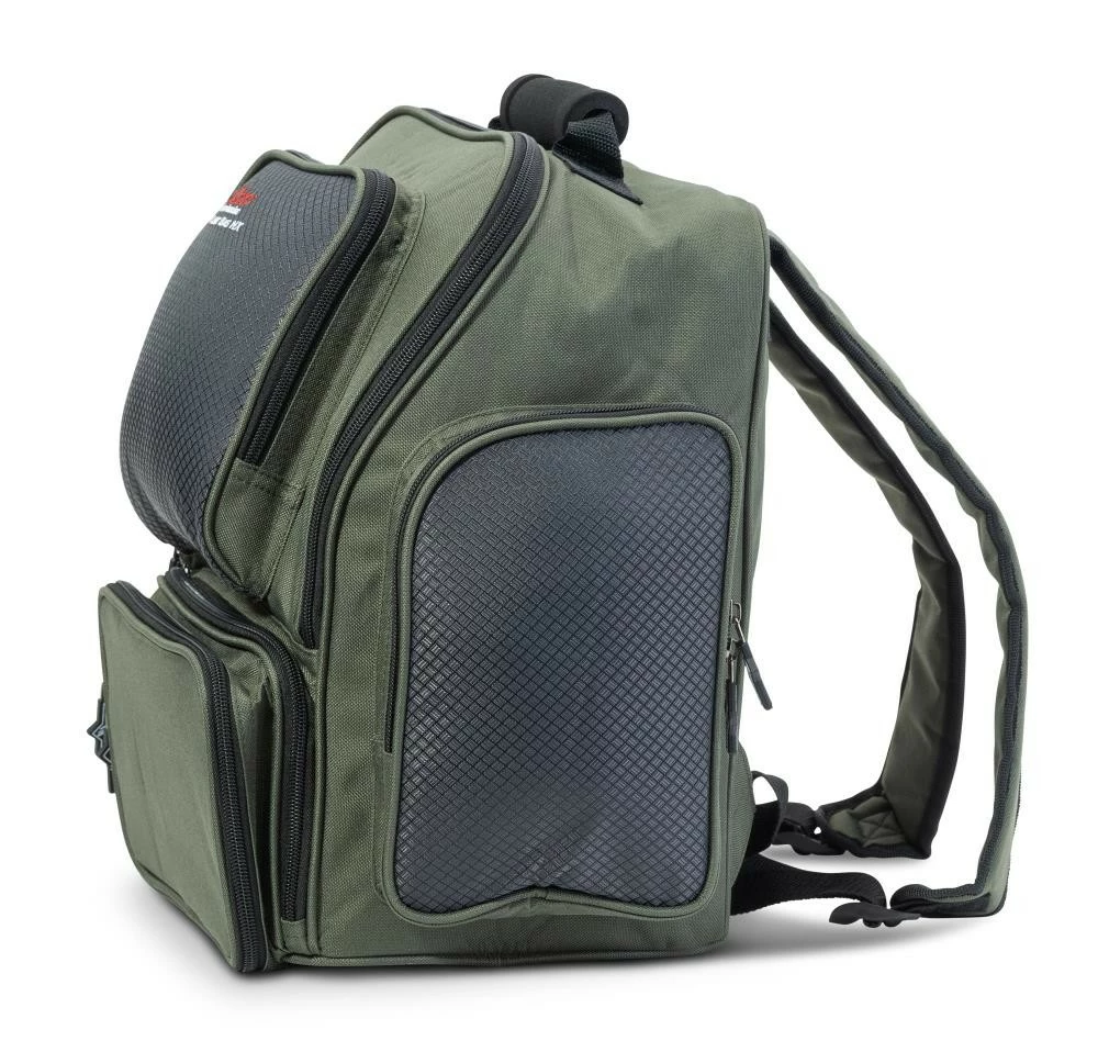 Das BP im Namen des IRON CLAW BP Lure Bag NX steht für “Back Pack”. Das ist der Tatsache geschuldet, dass dieses Modell als Rucksack getragen werden kann. Im Lieferumfang befinden sich drei Gerätekisten, welche im unteren Fach untergebracht sind. Am oberen Fach ist noch eine Vortasche angebracht und auf beiden Seiten befinden sich auch noch zusätzlich aufgesetzte Taschen.