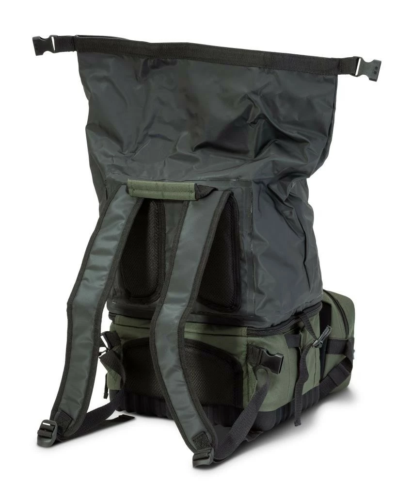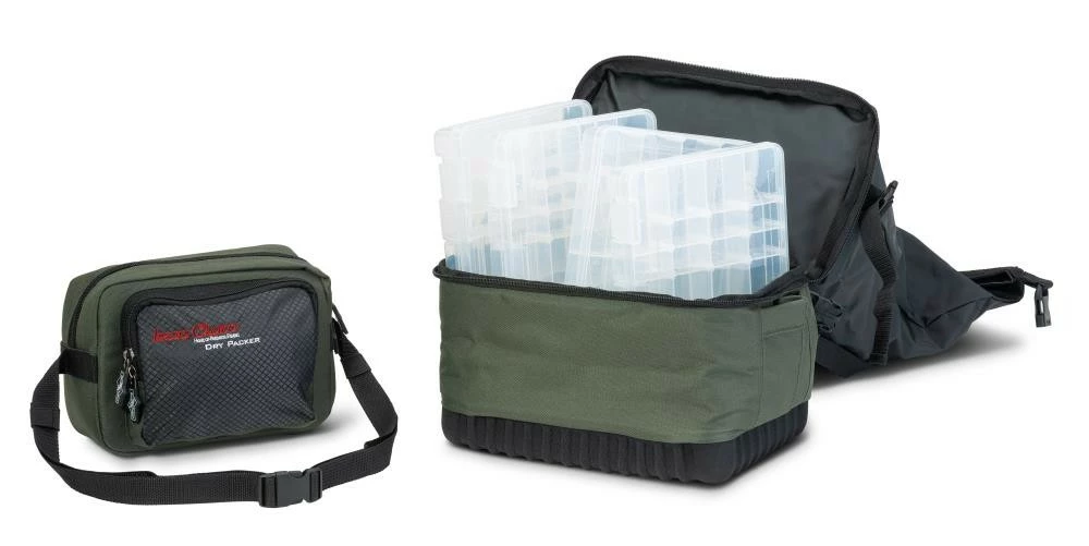 Kurz gesagt, ein Rucksack mit “Trockenabteil”. Der obere Teil des Iron Claw Dry Packer ist aus Heavy Duty PVC gefertigt und mittels Rollsystem wasserdicht verschließbar. Im separaten, unteren Fach des Rucksacks befinden sich vier Boxen. zudem ist die frontseitig aufgebrachte Tasche mittels Clips abnehmbar und lässt sich durch den angebrachten Gurt auch separat als Bauchtasche einsetzen.