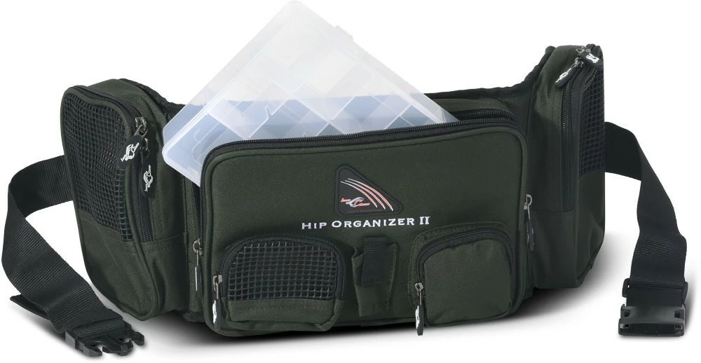 Der Bauchgurt für das große-kleine Gepäck ist für den Angler konzipiert, der auf seinen Touren etwas mehr am Bauch zu transportieren und organisieren hat. Fünf Taschen plus Zangenschlaufe mit Klettsicherung, zeichnen den Hip Organizer II aus. Im großen Hauptfach findet sich eine Utensilienbox, welche zum Lieferumfang gehört. Natürlich ist auch hier der Gurt mit einer besonders dicken und bequemen Polsterung ausgestattet.