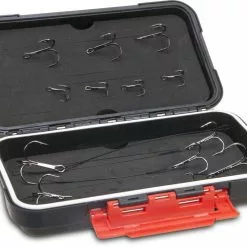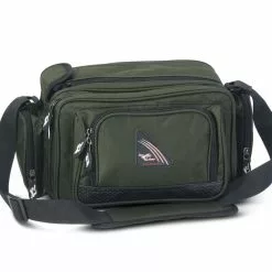 Eine große Tasche, wie sie sich vor allem Bootsangler schon lange gewünscht haben. Speziell Vertikal- und Drop-Shot-Angler finden hier eine Tasche mit 5 großen, individuell einteilbaren Tackleboxen, in denen etliche Gummiköder verstaut werden können. Die Tasche ist extra versteift und für jede Box einzeln unterteilt und fällt dadurch bei der Entnahme der einzelnen Boxen nicht so schnell wieder zusammen. Dadurch hat man schnellen Zugriff auf seine Köder und diese auch schnell wieder in der Tasche untergebracht.