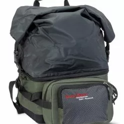 In den Außentaschen findet eine Menge Zubehör Platz und die angenähten Ösen und Zangenhalter bieten praktischen Zugriff auf die wichtigsten Werkzeuge. Durch das durchdachte Klappensystem der angebrachten Deckeltasche kommt man sehr schnell an alle kleinen Dinge, die man während des Fischens braucht, auch lässt sich z.B. nach dem Fischen ein Echolot dort unterbringen.