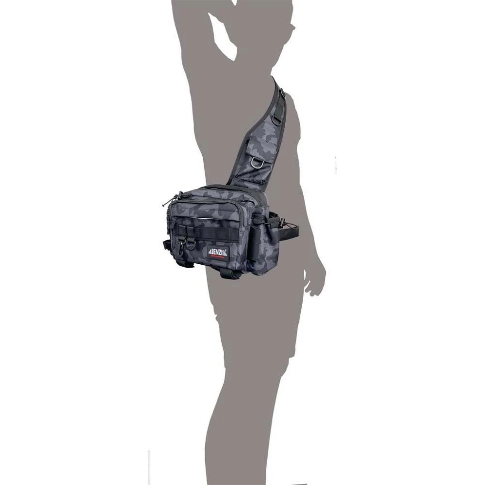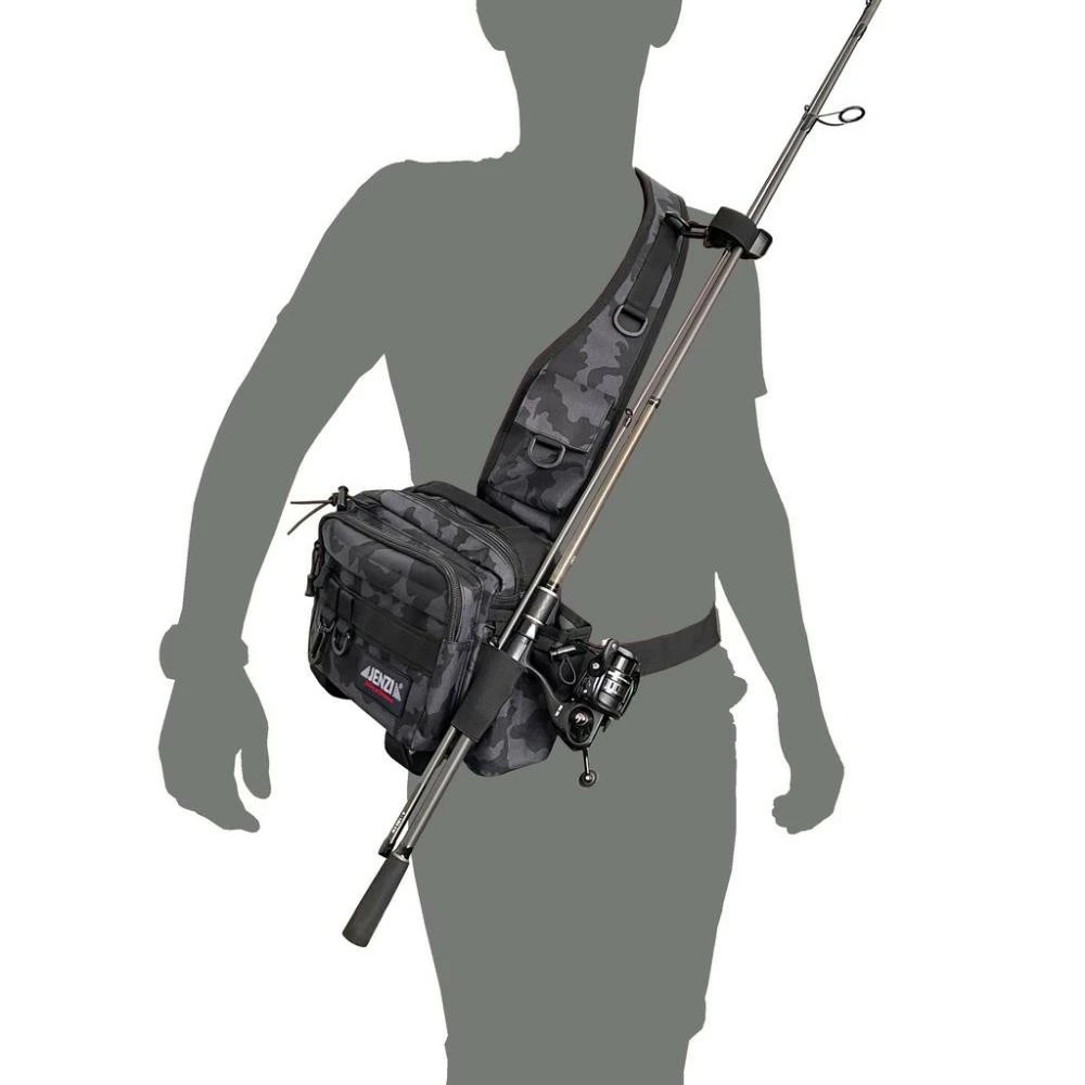 Die Camou Sling Bag (Schultertasche) ist speziell für das mobile Angeln konzipiert worden. Verschiedene Taschen, Clips, Halterungen sorgen für ein problemloses und durchdachtes Angeln. Die Tasche kann von der Seite zur Front gedreht werden, um ideal an das Tackle zu kommen. Während dem Angeln stört sie nicht, da sie an der Seite getragen werden kann. Das Material ist wasserabweisend und sehr strapazierfähig.