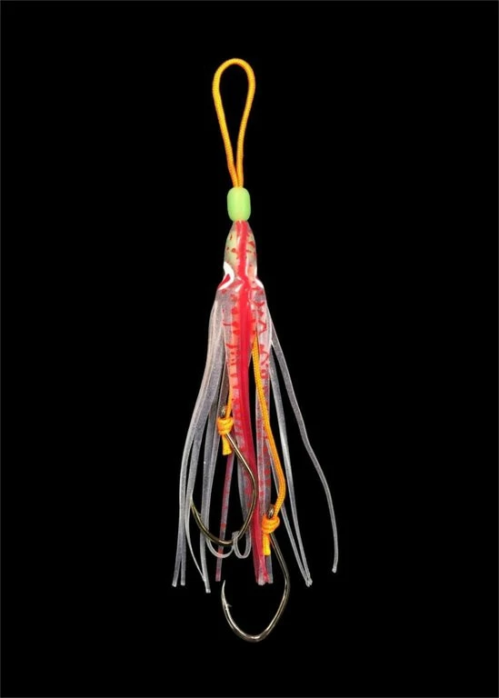 Dieses Rig gibt es in vier verschiedenen Farben. Es ist ausgestattet mit zwei extra starken Haken der Größe 2/0. Die Gesamtlänge beträgt 18cm, wobei die Länge der Oktopusse 12cm beträgt. Die einzelnen Oktopusse sind alle stark UV leuchtend, 12cm lang und sind mit einer Leuchtperle versehen, was für zusätzlichen Lockreiz sorgt. Diese Beifänger können überall dort eingesetzt werden, wo zusätzlicher Lockreiz entstehen soll.