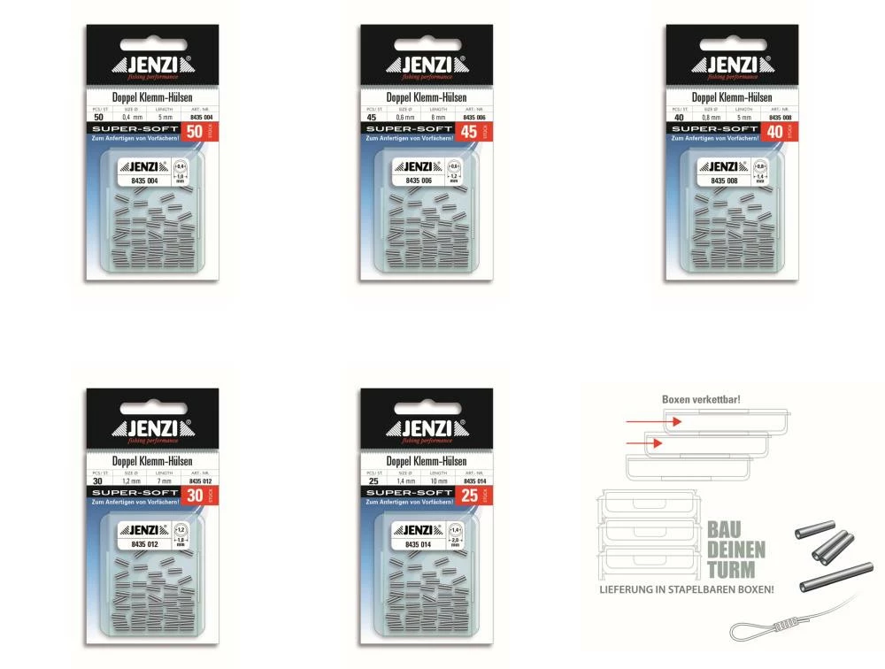 Diese Quetsch-Doppel-Hülsen sind ideal für Anfertigung von Vorfächern. Der Inhalt ist abhängig von der Größe und variiert von ca. 25-50 Stück.