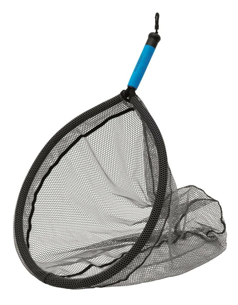 Der schwimmende Kinetic Meerforellenkescher L verhindert Verwicklungen und festsitzende Haken und bleibt dabei flexibel und gut erreichbar. Der Kescher ist mit einem weißen, verwicklungsfreien Mikromaschennetz aus Gummi ausgestattet, und verringert als knotenloses Netz Verletzungen der Fische. Zu den weiteren Merkmalen gehören ein fischfreundlicher flacher Boden, ein Karabinerhaken und ein schwimmendes Design – leicht zurückzuholen, falls das Netz versehentlich ins Wasser fällt.