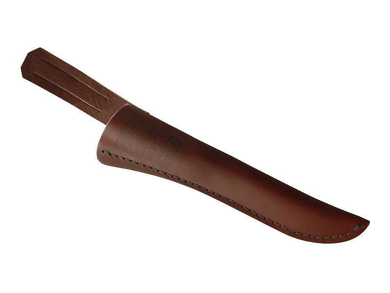 Natur und High-Tech zu verbinden, gelingt den Finnen immer wieder. Bei diesem Marttiini Filetiermesser ist der Griff aus hitzebehandeltem, gewachstem Birkenholz. Die so genannte Superflex-Klinge ist rostfrei und erweist sich als äußerst biegsam. Das Messer wird in einer braunen Lederscheide mit Gürtelschlaufe geliefert.