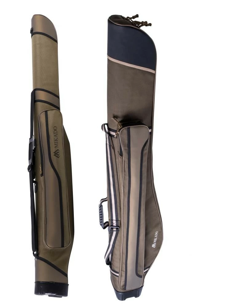 Das feste Futteral für den Transport von Ruten besteht aus dichtem Cordura, was sich durch sehr hohe Abriebfestigkeit auszeichnet. Die Unterseite der Futterale wurde verstärkt, so dass es vertikal stabilisiert werden kann. Verfügbar sind zwei Längen mit 135cm bzw. 150cm und mit einem oder zwei Fächern.