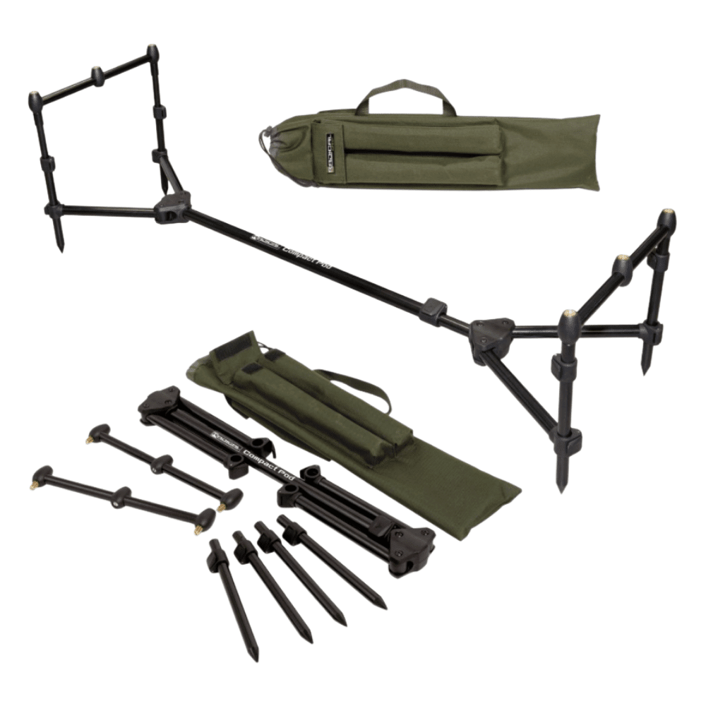 Dieses Rod Pod trägt den Namen Compact zu Recht. Zerlegt passt er in seiner Transporttasche in fast jedes Carryall und jeden Rucksack. Perfekt für mobile Angler oder sehr kleine Angelplätze.