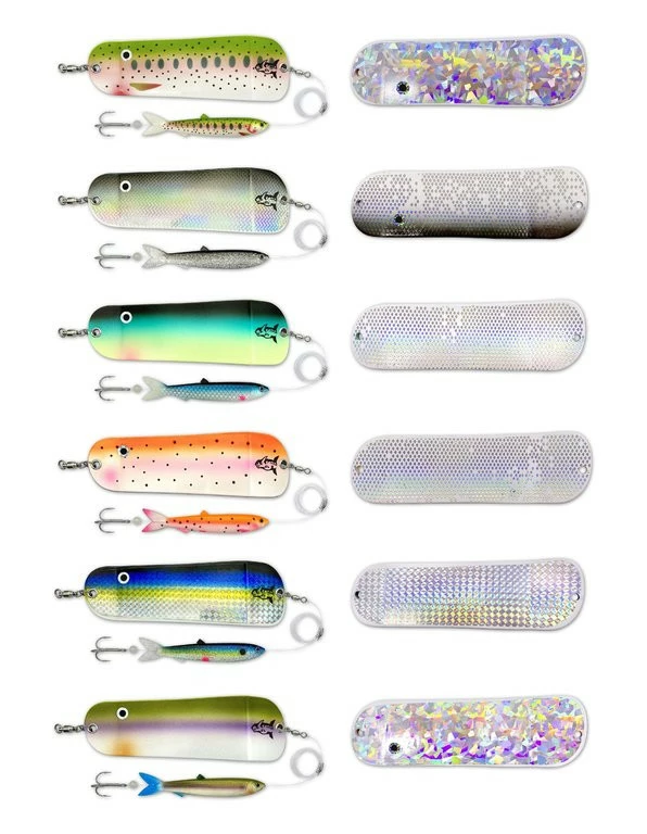 Tausendfach bewährt in der Praxis: attraktiv rotierender Flasher mit nachgeschaltetem Gummifisch. Auch wenn es viele neuartige Flasher auf dem Markt gibt, die altbewährte Flasher-Form ist ungebrochen fängig und hat viele Anhänger. Deshalb gibt es ihn im neuen Dekoren, farblich abgestimmt zu unseren Soft Finnys. Easy to use im vormontierten Set. Perfekt montiert an Qualitätsschnur (0,60 mm) und einemVMC-Haken mit erstklassigen Knoten. Aus der Verpackung, fertig fu?r den Traumlachs!