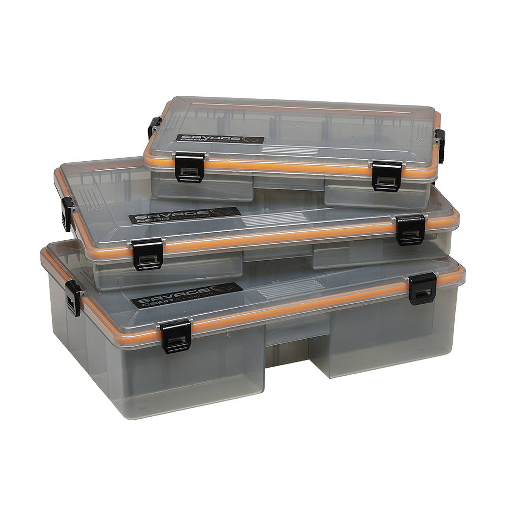 Mit diesen robusten und langlebigen Köderboxen können Sie Ihre mittleren und größeren Köder und Ihr Zubehör perfekt organisieren. Mit ihren leichtgängigen Scharnieren und wasserdichten Deckeln sind sie ideal, um Ordnung in Ihr Köder-Angelzubehör zu bringen.